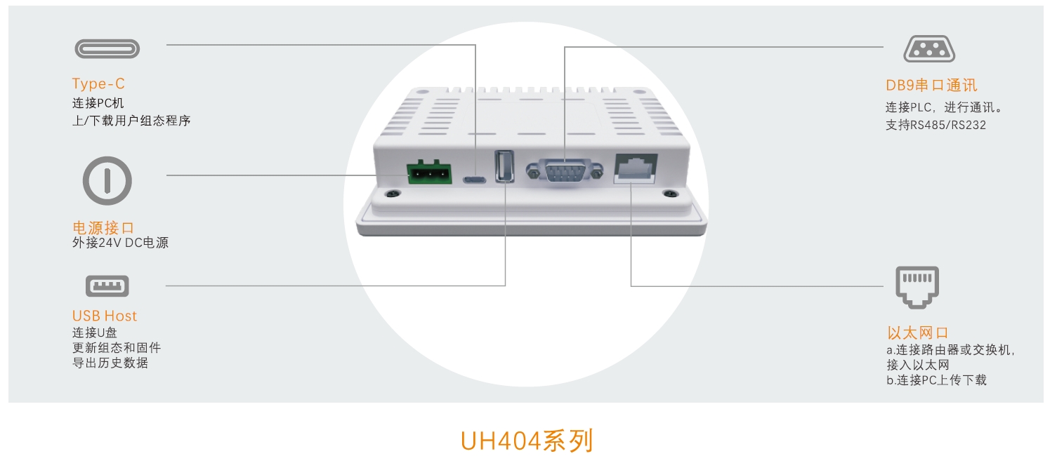 | USB Host | USB2.0 x 1,支持U盘更新固件、组态和存储数据 | |